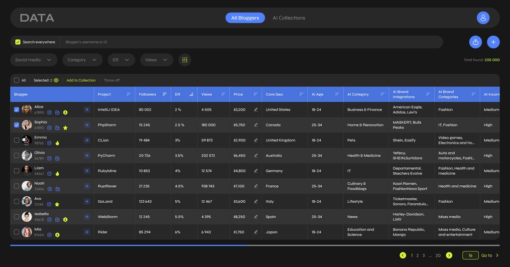 Expanding the capabilities of hosting and managing a creators’ database with AI-enrichment and regular auto-updates for basic profile statistics
